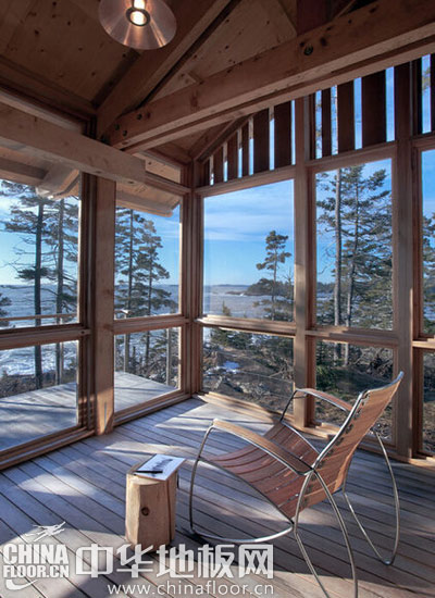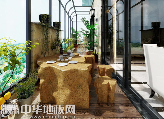 防腐木地板图片3:将凸出的阳台改造成阳光房真是绝赞,光线能塑造出耐人寻味的层次感,空间落地的玻璃能收到独特的效果,铺装防腐木地板更能耐得住肆意的阳光。